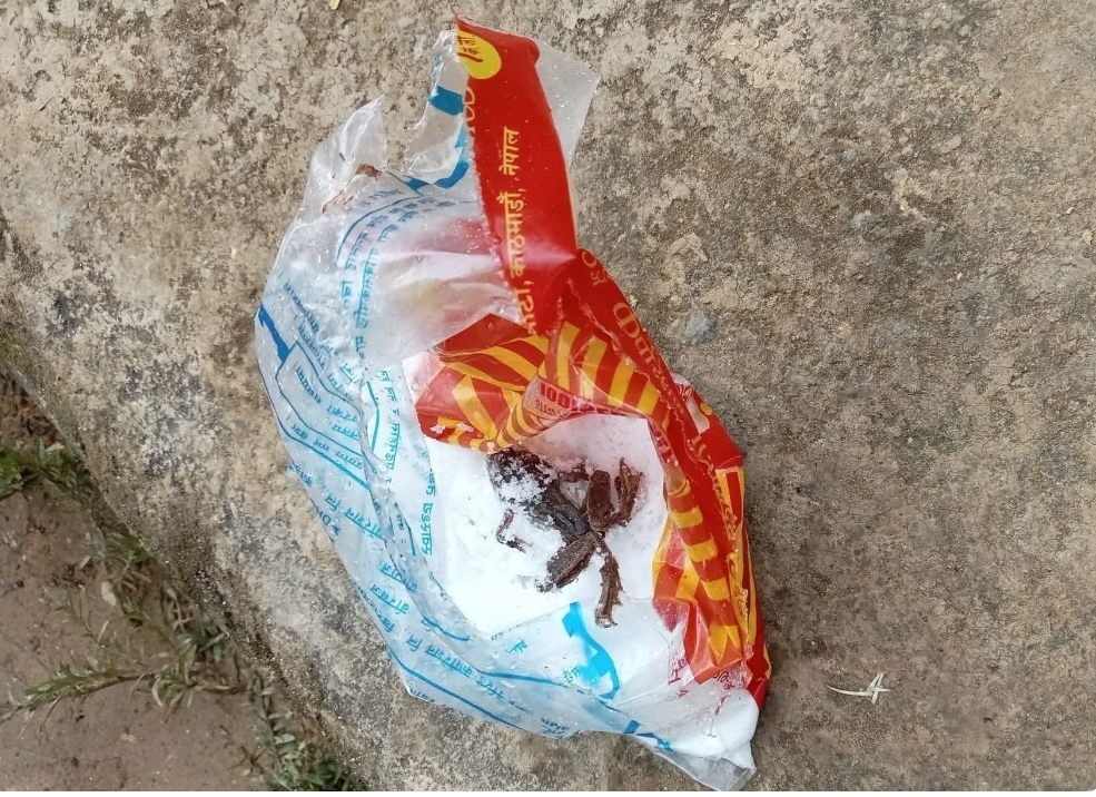 वालिङ नगरपालिका–७, ताप्केका ताराबहादुर थापाले वालिङ नगरपालिका–६ स्थित मिर्दीबाट खरिद गरी लिएको नुनमा सुकेको अवस्थामा मरेको भ्यागुतो भेटिएको हो ।